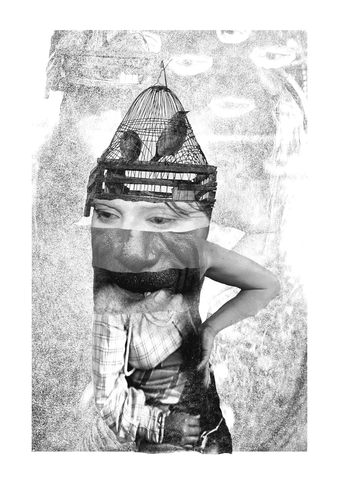 Kolažni portret sem sestavljal digitalno iz skenov slik iz knjige National Geographic o portretih, ki so mi služile tudi kot inspiracija za oblikovalski stil. Gre za portret nezavednega, kjer posamezni elementi skupaj ustvarjajo vizualno reprezentacijo notranjega sveta. Projekt vključuje tako črno-belo kot barvno verzijo, saj se mi zdi zanimivo, kako različni pristopi vplivajo na dojemanje portreta. Preko dveh strani so predstavljene tudi posamezne skenirane slike, ki sestavljajo končno kompozicijo, kar omogoča vpogled v proces gradnje portreta in povezuje posamezne elemente v celoto.